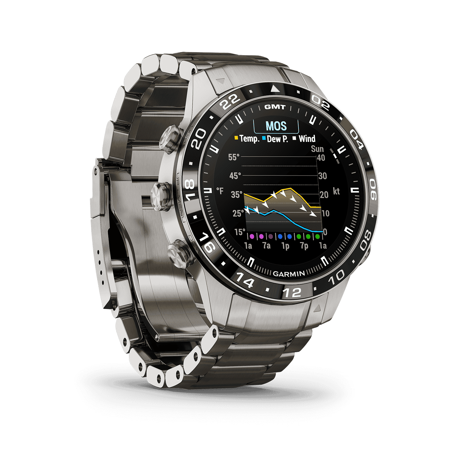 - Premium toolwatch med et klassisk GMT-design med en 46 mm urkasse laget av ultrahard titan av klasse 5 samt et børstet titanarmbånd med et deksel med låsespenne